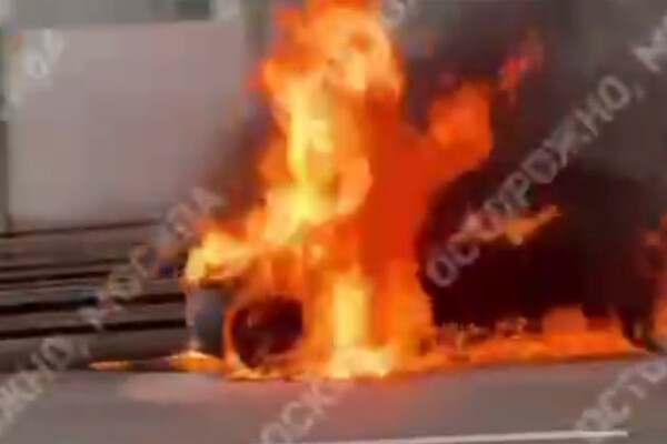 На востоке Москвы автомобиль сгорел дотла прямо на трассе. Кадры опубликовал Telegram-канал «Осторожно, Москва».