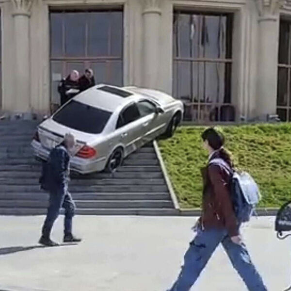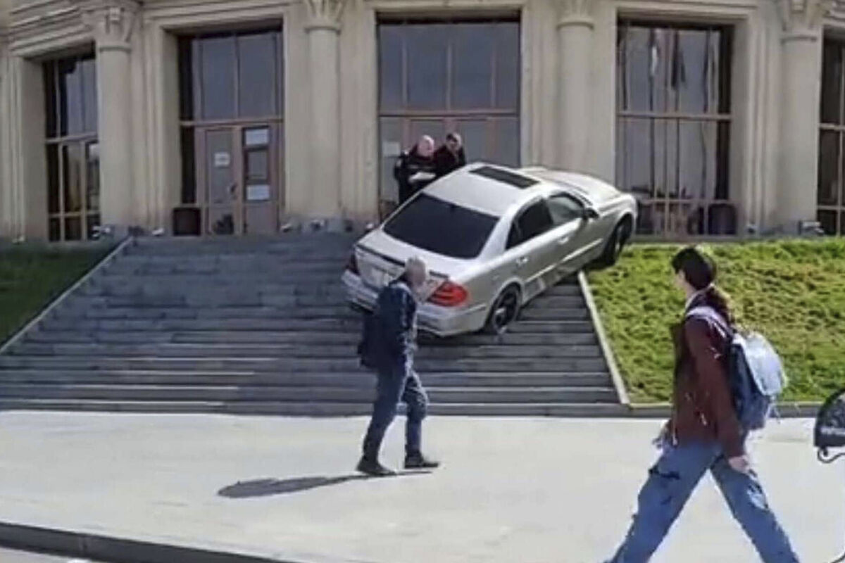 В армянском городе Гюмри неизвестный мужчина на Mercedes попытался заехать в мэрию на автомобиле прямо по ступенькам. Кадры произошедшего распространились в соцсетях.