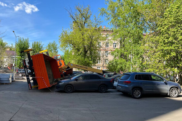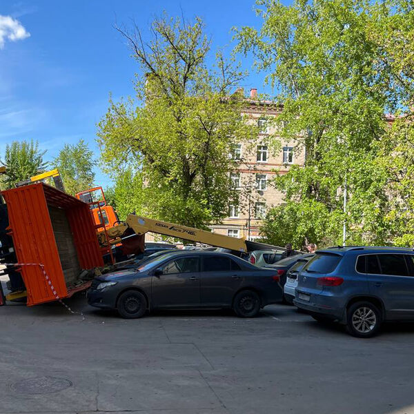 «Во дворе на улице Чистова в Текстильщиках машина упала на несколько припаркованных автомобилей. Грузовик производил разгрузку, после чего произошел завал на правую сторону», — говорится в сообщении.