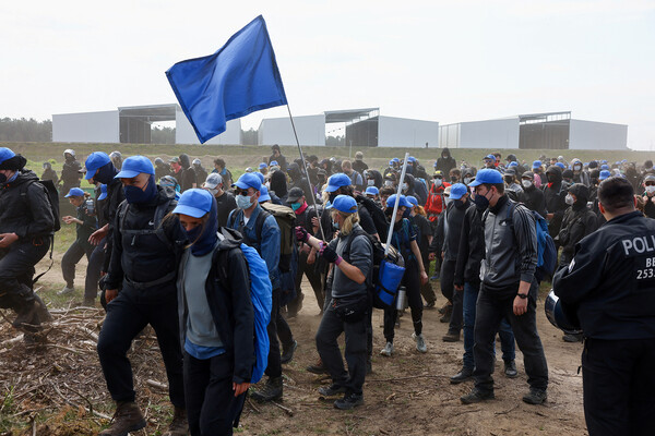Отмечается, что протестующие выступают против расширения производства завода Tesla, из-за чего будут вырублено 100 гектаров леса. На видео показано, как сотни людей в темной одежде и масках бегут в сторону предприятия. Их поддерживает группировка «Вулкан», которая ранее подожгла трансформаторную будку завода. Полиция сообщила о риске диверсий.