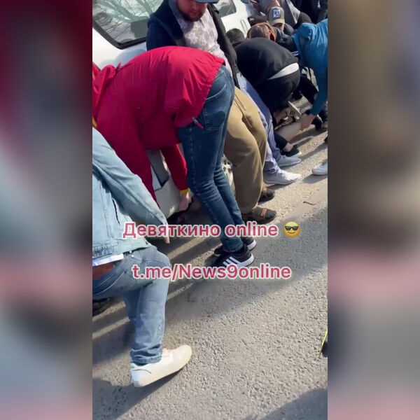 В Девяткино люди решили самостоятельно поднять микроавтобус, чтобы спасти сбитого им пешехода. Кадры произошедшего опубликовали в Telegram-канале «Девяткино online».