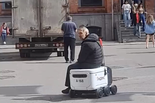 В конечном итоге мужчина встал с робота-курьера. Чем все закончилось, не сообщается.