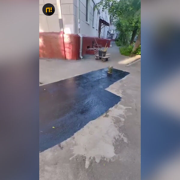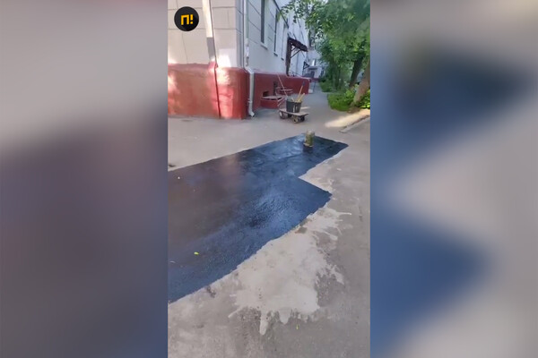 На имитацию асфальта обратили внимание жильцы дома по ул. Победы. По их словам, коммунальщики должны были уложить во дворе новое покрытие, но, так как асфальта не хватило, одну из ям залили цементом, а потом покрасили.