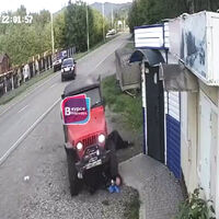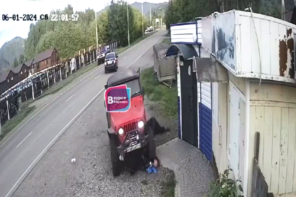 На видеозаписи с моментом наезда видно, что красный внедорожник выехал на встречную полосу, а затем на обочину, по которой шли два человека. Они находились спиной к приближающемуся автомобилю. Один из пострадавших после наезда смог встать на ноги, другой оказался под колесами. После этого красный внедорожник по касательной врезался в забор и остановился.