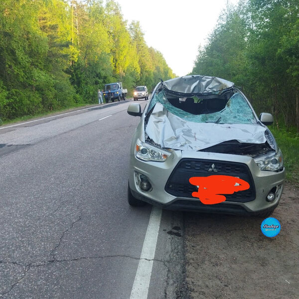 На кадрах с последствиями ДТП видно, что от удара крыша Mitsubishi ASX в передней части салона оказалась сорвана и смята. Также у машины слетел с креплений передний бампер, смят капот, а в лобовом стекле образовалась дыра. Также у машины разбито заднее стекло. Животное при ДТП не выжило.