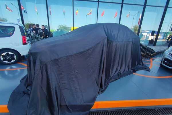Новинка оказалась выполнена в красном цвете. До этого она была спрятана под черным покрывалом. По словам журналистов, по габаритам автомобиль кажется несколько больше, чем ожидалось.