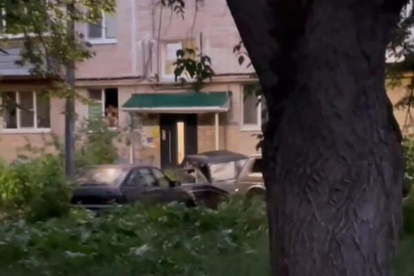На кадрах, снятых очевидцами, видно, что «Нива» золотистого цвета задним ходом врезается в «Жигули» и выталкивает их к подъезду жилого дома. После этого «Нива» на большой скорости уезжает.
