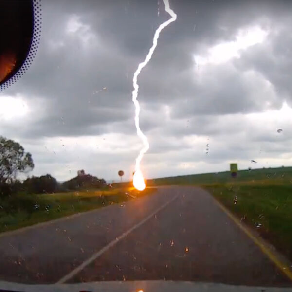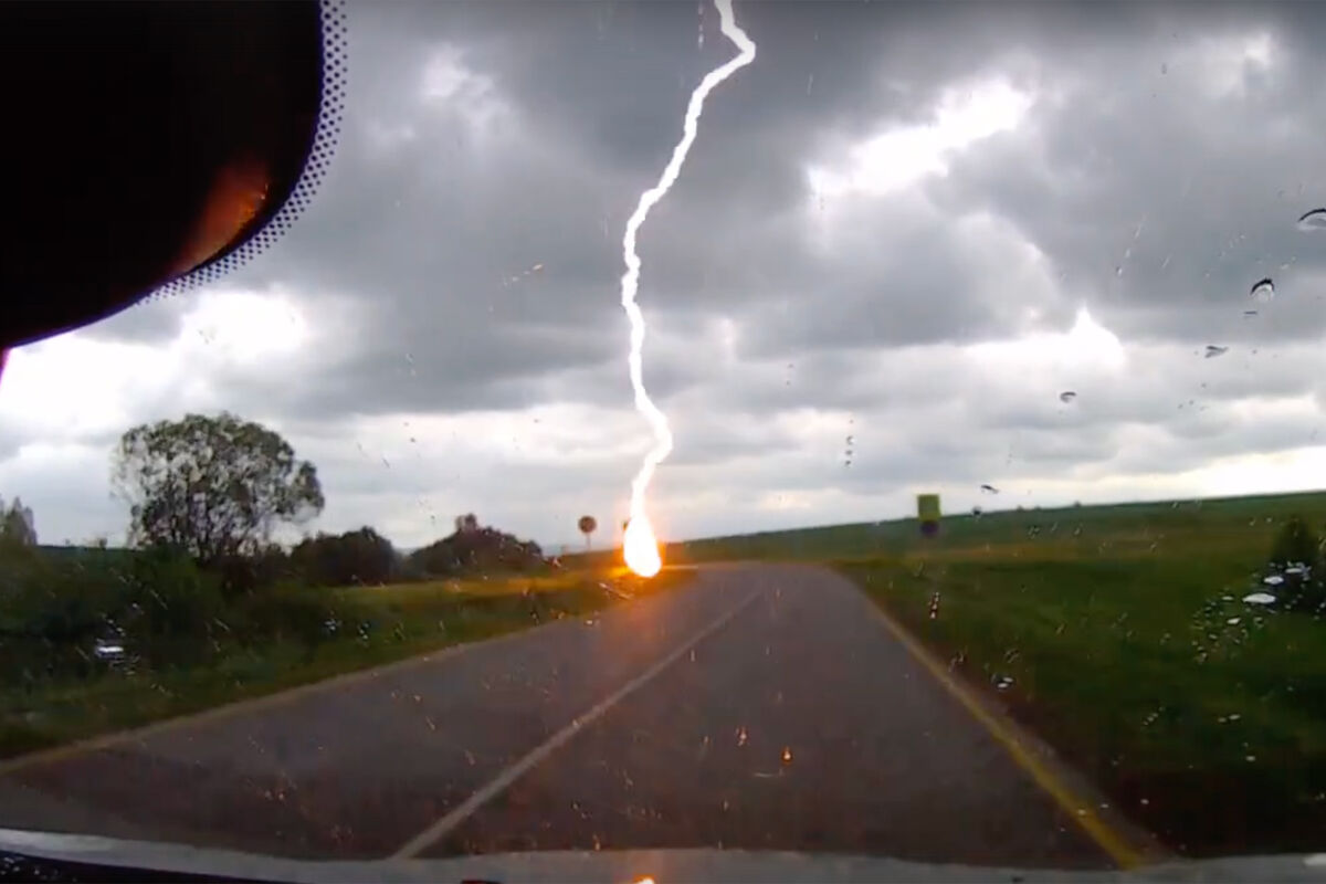На кадрах с автомобильного видеорегистратора видно, что разряд атмосферного электричества ударил в проезжую часть дороги в непосредственной близости от проезжающего автомобиля. Разряд пришелся на обочину дороги. После удара образовалось облачко дыма. Автомобиль с видеорегистратором ехал по двухполосной дороге в сельской местности, навстречу ему проехал еще один автомобиль.