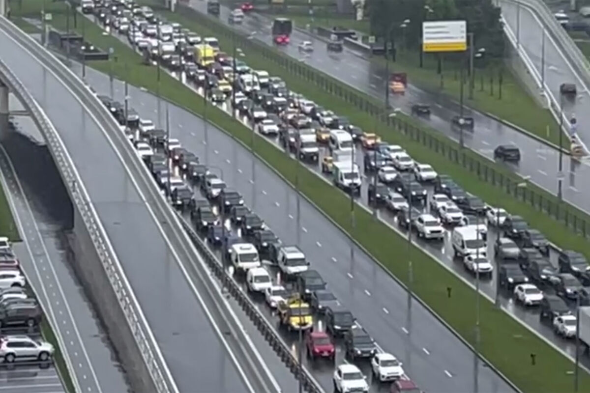 «На Рублевском шоссе встали машины, дорога оказалась частично подтопленной, водители не рискуют ехать по огромной луже после ливня», — говорится в публикации.
