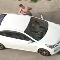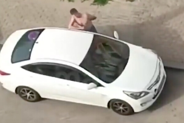 Также злоумышленник сбрасывал камни с балкона на припаркованные автомобили. На опубликованной записи с видеорегистратора видно, что голый по пояс мужчина подошел к автомобилю с водительской стороны. После того как водитель опустил стекло, нападавший выругался и пригрозил воткнуть водителю в голову нож. После того как автомобилист попытался уехать, агрессивный мужчина произвел выпад рукой с ножом в его сторону, но водителя не задел. На другой видеозаписи видно, как он бьет рукой по стоящему во дворе белому седану, держа вторую руку за спиной.