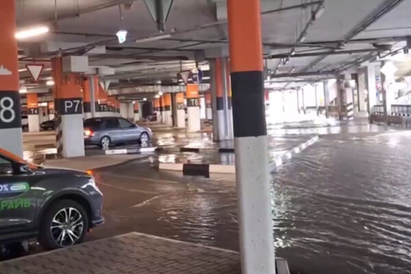В Москве сильный дождь затопил парковку ТЦ «Мега Теплый стан». Очевидцы сняли произошедшее на видео и опубликовали в Сети.