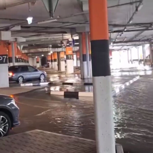 На кадрах видно, что из-за дождя под водой оказалась парковка на цокольном этаже здания. Автомобили вынуждены «плыть» по асфальту.