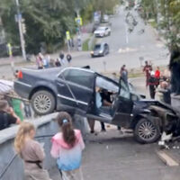 «Водитель был трезвый, в шоковом состоянии, сказал: «Одно радует, что людей не снес». С лестницы спускались четыре человека, авто приземлилось в сантиметрах десяти от них. Кричали все, особенно девушка как давай верещать, там ногами топать, аж сумку бросила. Водитель залетел на этот трамплин со стороны Ленина, по Плеханова несся. Как он там так смог разогнаться, непонятно. Расстояние от [улицы] Ленина до [улицы] Плеханова маленькое для такого взлета. Очень быстро ехал, скорость была примерно 100 км/ч. При взлете на трамплине водителя за рулем не было. Как авто приземлилось на лестнице, водитель выпал с задних сидений. Водитель сам ничего не понял, как это произошло, сказал, мистика какая-то. Говорит, я как подлетел, оказался на заднем сидении», — сказал Леонид.