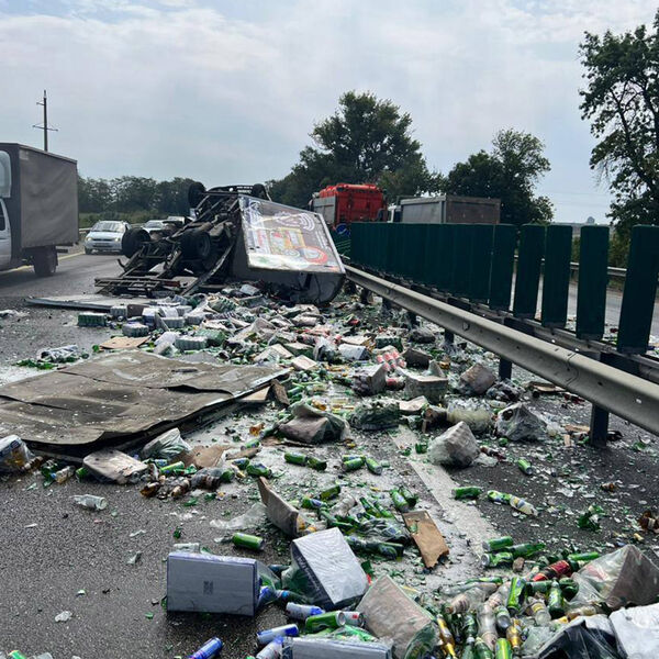 Отмечается, что в результате аварии пострадали только банки с алкогольным напитком. На опубликованных кадрах видно, что разбросанная продукция занимает половину дороги, мешая машинам проехать.