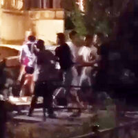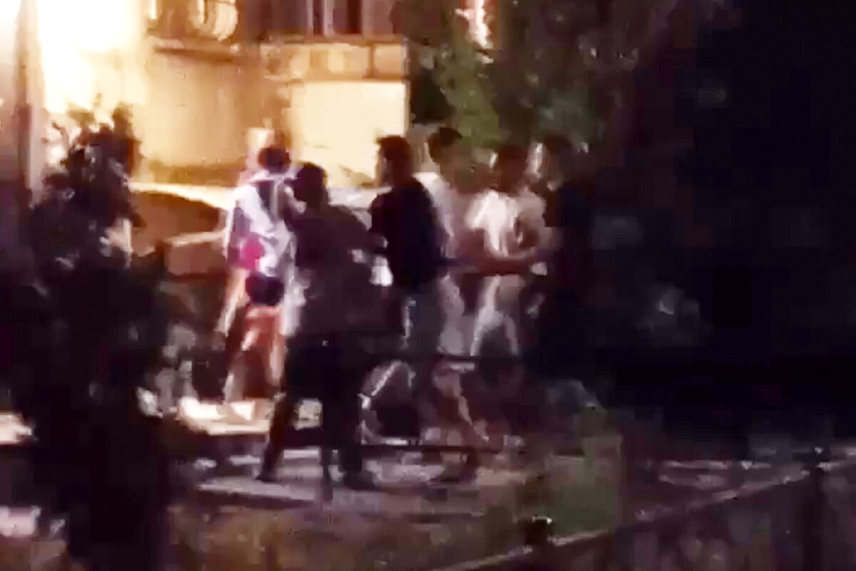 На кадрах с места происшествия видно, что вблизи жилого дома происходит потасовка с участием нескольких человек.