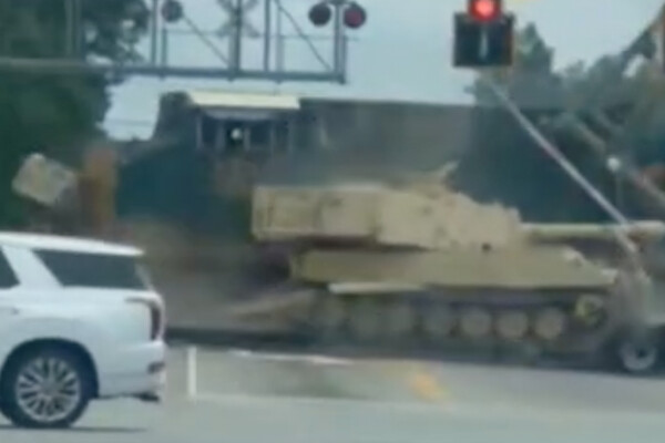 Момент ДТП самоходки армии США и товарного поезда попал на видео
