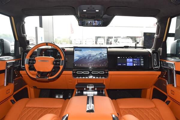 Среди внедорожного оборудования — специальные шины, встроенная лебедка, экспедиционный багажник и крепление для шанцевого инструмента на боковине кузова. Для машины доступны различные варианты оформления салона — в белом и оранжевом цветах.