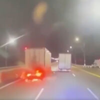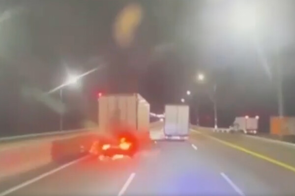 На видео с моментом ДТП видно, что Audi врезалась в полуприцеп через несколько секунд после того, как фура перестроилась. Грузовик остановился через некоторое время после удара.