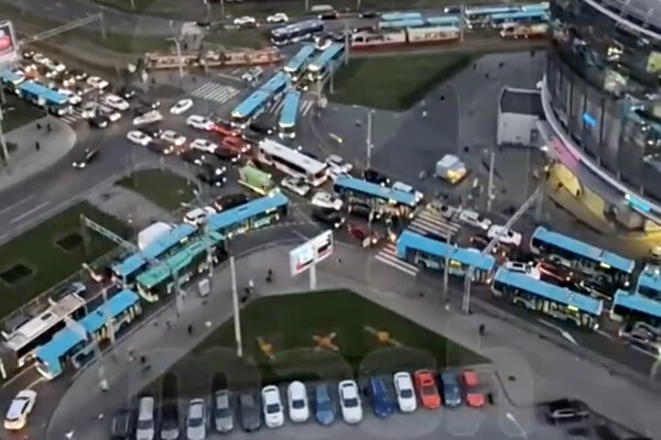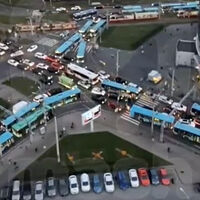 В Санкт-Петербурге очевидцы сняли на видео гигантскую пробку из автобусов на Комендантской площади. Об этом сообщает Telegram-канал «Mash на Мойке», публикуя кадры.