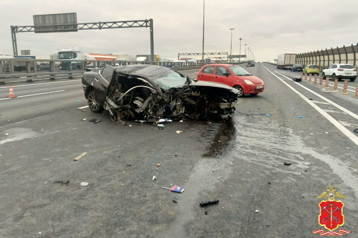При массовом ДТП на Кольцевой автодороге (КАД) в Санкт-Петербурге у автомобиля Infiniti оказалась разрушена половина кузова. Фото с последствиями аварии опубликовал Telegram-канал ГУ МВД по Санкт-Петербургу и Ленинградской области.