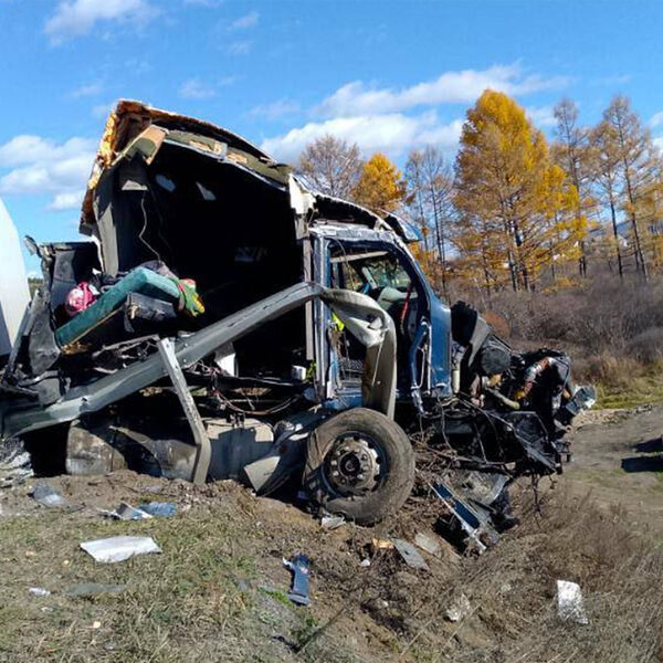 Один из грузовиков врезался в группу дорожных рабочих, уточняет Telegram-канал «Весь Улан-Удэ». По словам очевидцев, у машины отказали тормоза. Авария произошла на Тарбагатайском мосту, в 186 км от Улан-Удэ. Движение на месте аварии затруднено. На видео с последствиями аварии видно, что у одной из фур сильно разбита кабина, тягач выбросило за пределы трассы.