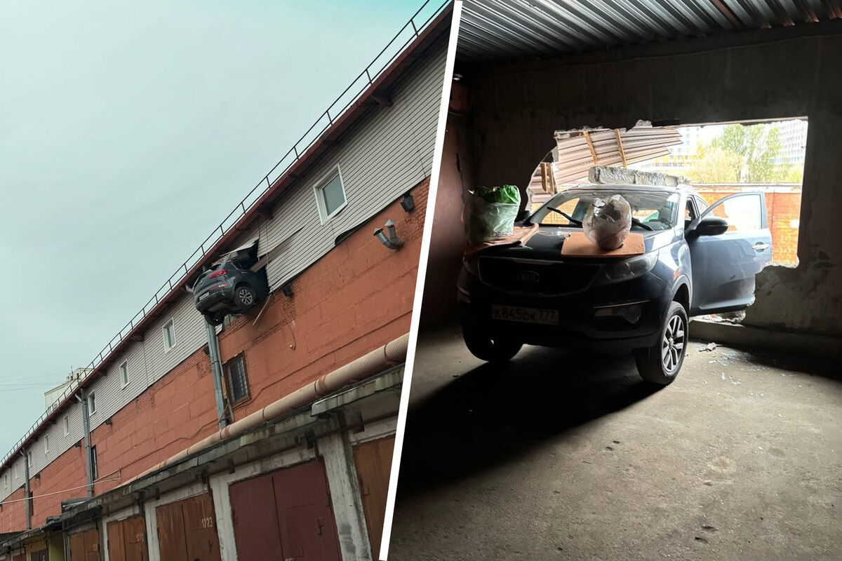 В Москве кроссовер Kia завис над гаражами после того, как пробил стену паркинга. Об этом сообщает Telegram-канал «Осторожно, Москва».