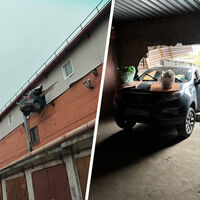 «Сегодня днем в здании гаражной парковки автомобиль пробил стену и повис над гаражами на уровне второго этажа. Чтобы предотвратить падение, его владелец положил на капот машины пакеты с утяжелителями», — говорится в сообщении канала.