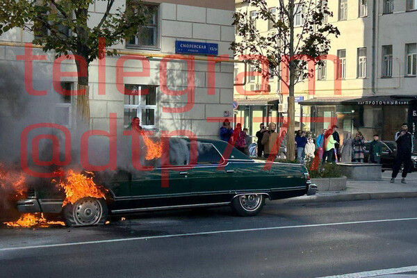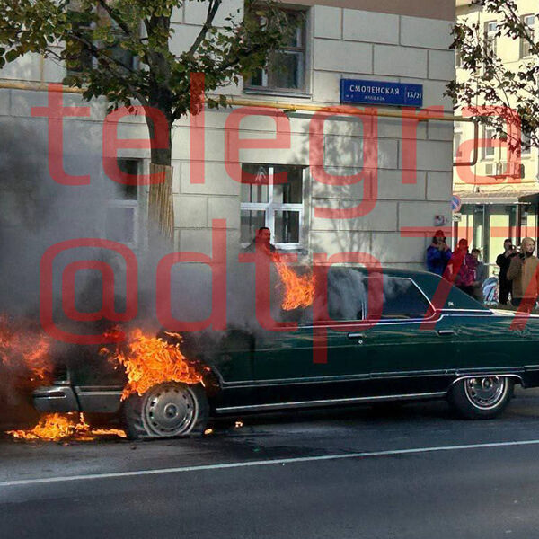 Инцидент произошел сегодня днем на Смоленской площади. Загоревшейся машине 46 лет.