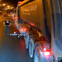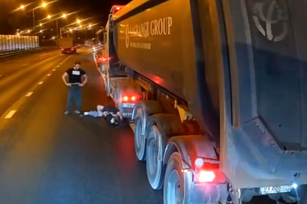 На кадрах видно, что два грузовика и легковая машина припаркованы на обочине. Еще один грузовик с видеорегистратором стоит в полосе движения. Перед машиной находятся двое мужчин, которые ожесточенно спорят и вступают в драку, а затем, сцепившись, падают на асфальт. Третий мужчина через некоторое время попытался разнять дерущихся, к ним подошел еще один водитель. После стычки мужчины поднялись на ноги.