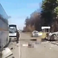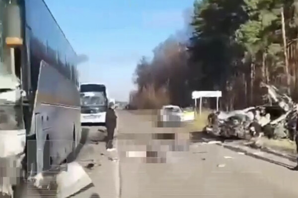 В Подмосковье пьяные мужчины на Jeep влетели в автобус с пассажирами. Кадры с места ДТП опубликовал Telegram-канал Baza.