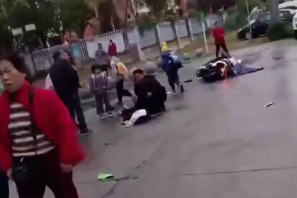 В китайской провинции машина сбила толпу людей у школы
