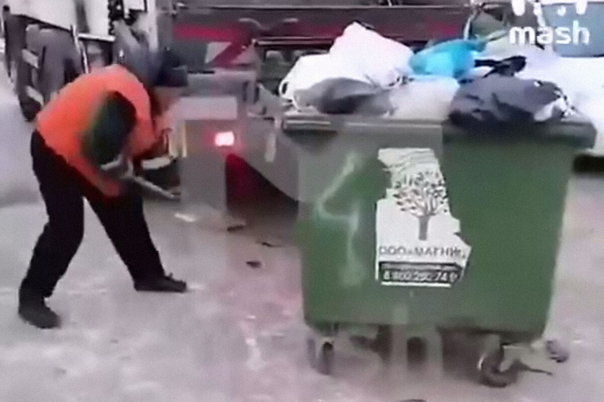 В Омске коммунальщик сыграл в хоккей с крысами, чтобы загрузить мусор в машину. Об этом сообщает Telegram-канал Mash.