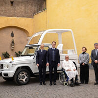 «Генеральный директор Mercedes-Benz Ола Каллениус и члены команды, участвующие в проекте, лично передали папе Франциску в Ватикане уникальный автомобиль ручной работы на базе нового электрического G-Class», — заявили в пресс-службе.