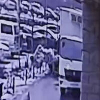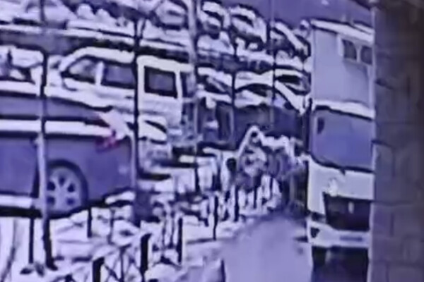 На кадрах видно, что для прохода людей водитель оставил узкую полосу пешеходной дорожки у забора. После падения тележки с продуктами правая нога прохожей оказалась придавленной к низкому забору, ограждавшему тротуар. Пострадавшая перевалилась через него и оказалась на земле, в снегу и грязи.