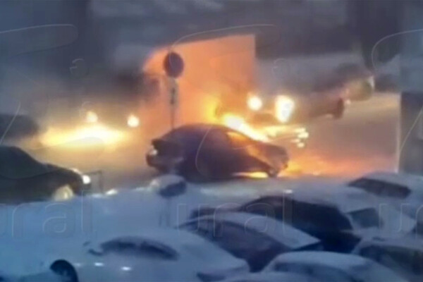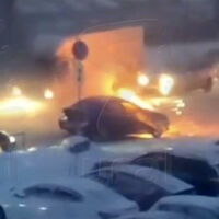 На опубликованном видео видно, что из подкапотного пространства автомобиля вырываются языки пламени, также огонь виден в районе переднего колеса. Автор видео сказал за кадром, что машину пытались потушить при помощи огнетушителя. После того, как справиться с огнем не удалось, люди отошли от машины.