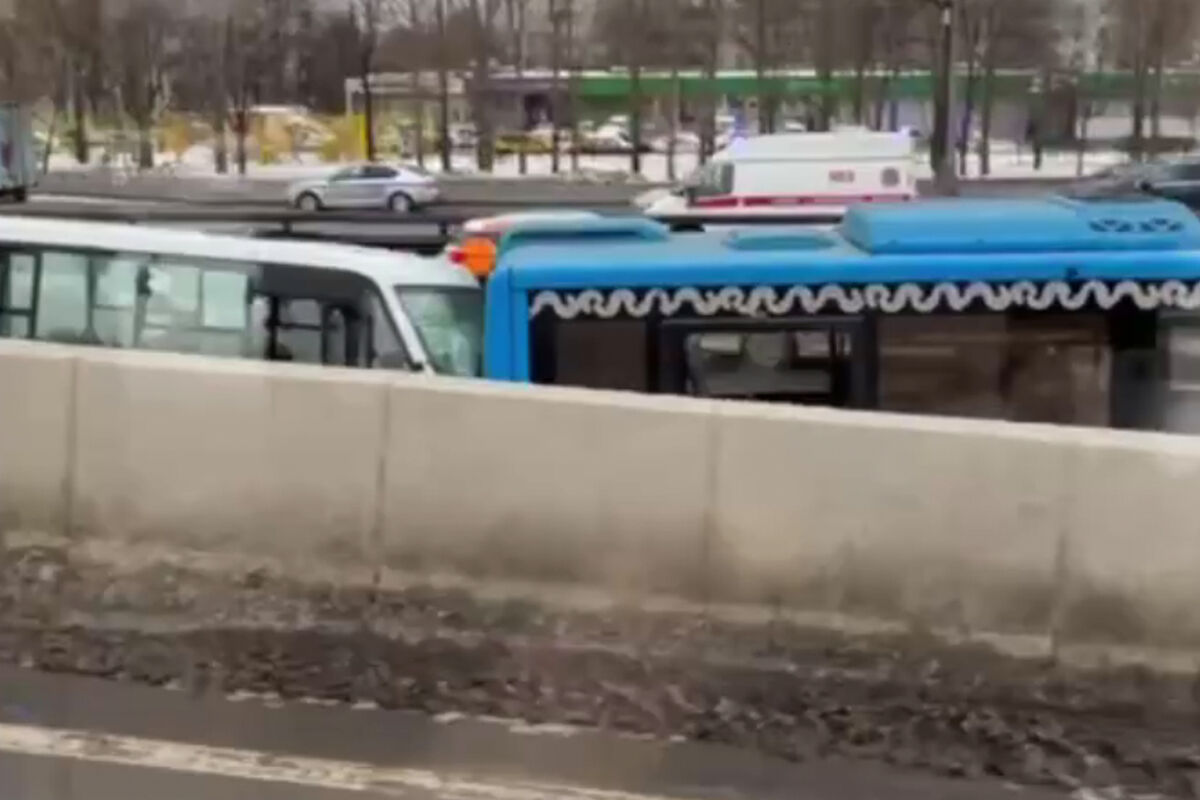На видео попали последствия ДТП с автобусом и маршруткой в Москве