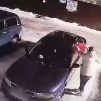 На кадрах видно, что пожилая женщина подошла к ряду припаркованных автомобилей и тщательно облила из канистры автомобиль Mitsubishi Carisma темного цвета, а затем вылила горючее на землю рядом с машиной и подожгла. Машину быстро охватило пламя.