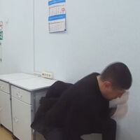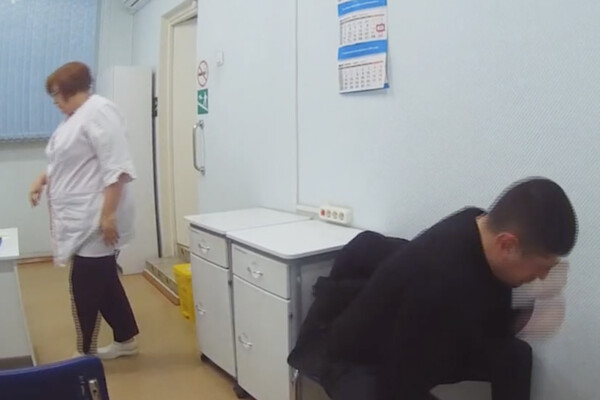 Там он сначала требовал оказать ему помощь в связи с болями в ноге, затем захотел пить, а после начал бить себя кулаком по лицу. Этот момент попал на видео. После того, как водитель разбил себе лицо, его заковали в наручники.