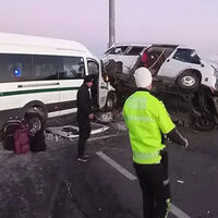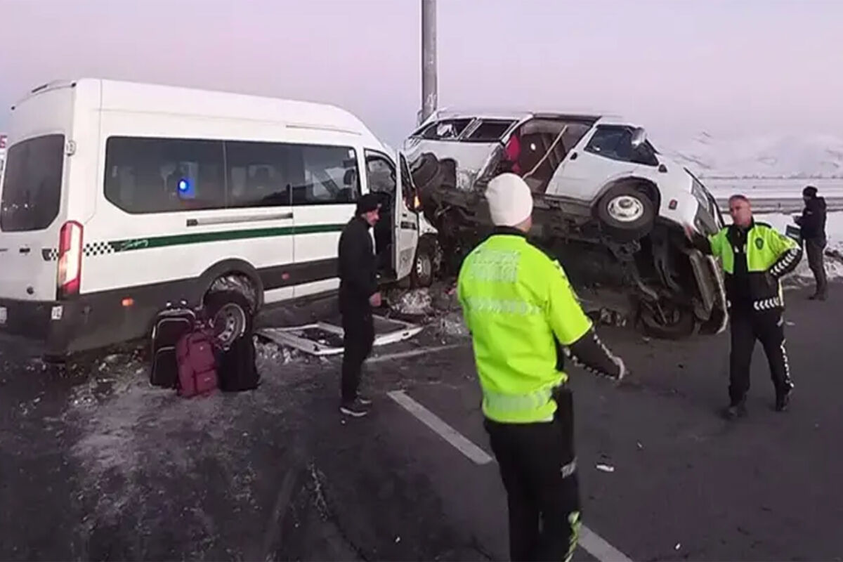 По данным агентства, ДТП случилось вечером на перекрестке. Одно транспортное средство с пассажирами следовало в город Сарыкамыш, а другое — в Кагызман. На фото с места происшествия видно, что один микроавтобус впечатал второй в столб, от чего тот почти завалился на бок. На место прибыли сотрудники экстренных служб. Пострадавшие госпитализированы, один из них находится в тяжелом состоянии.