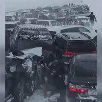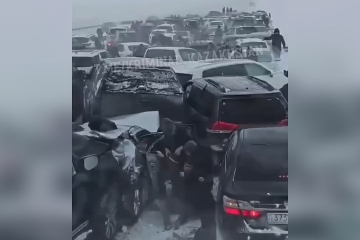 Массовая авария с участием 95 машин произошла на трассе днем 3 января. Машины, застрявшие на дороге из-за метели, начали движение после расчистки трассы, но начали сталкиваться из-за несоблюдения дистанции.
