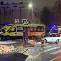 По данным ведомства, инцидент произошел в 18:50 (19:50 мск) на пересечении улиц Брамса и Репина, когда водитель за рулем Volkswagen Passat не уступил дорогу согласно дорожному знаку и столкнулся с маршруткой.