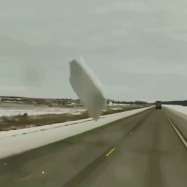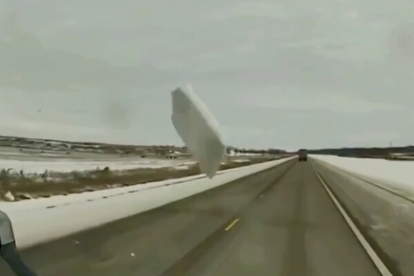 Видеорегистратор автомобиля запечатлел произошедшее. На кадрах видно, как глыба льда вылетает с крыши встречного автомобиля и пробивает лобовое стекло большегруза, при этом задевает и видеорегистратор. После этого видно, что камера направлена вниз, вокруг лежат осколки и черная шапка.