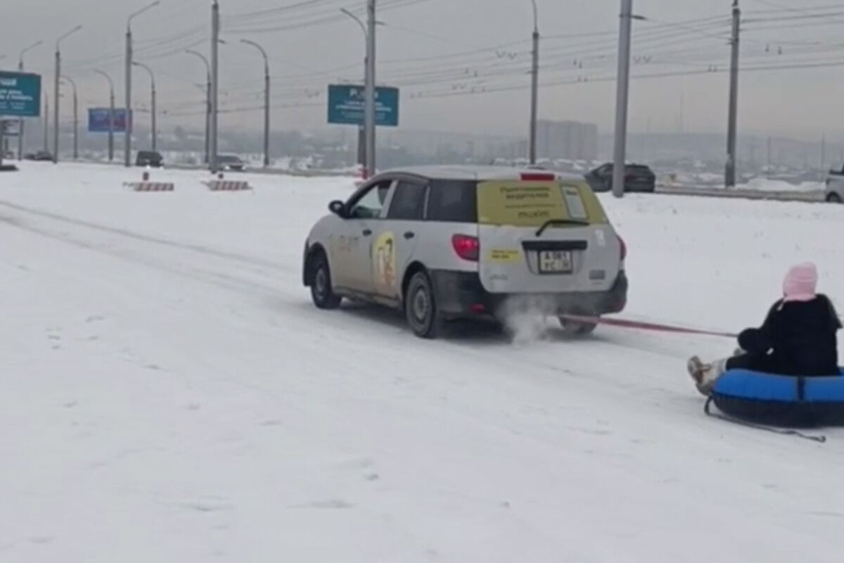 В Иркутске таксист прокатил пассажирку на тюбинге и попал на видео. Кадры опубликовал бывший глава пресс-службы регионального ГУМВД Герман Струглин в своем Telegram-канале.