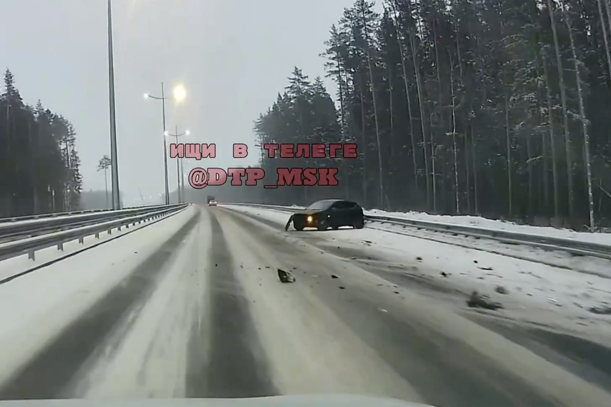Видеорегистратор автомобиля, водитель и пассажир которого стали очевидцами аварии, запечатлел инцидент. На кадрах видно, как черная легковая машина выезжает на встречную полосу движения, но сворачивает обратно и врезается в дорожное ограждение. От удара автомобиль начинает вращаться, после чего он останавливается и задней частью врезается в отбойник.