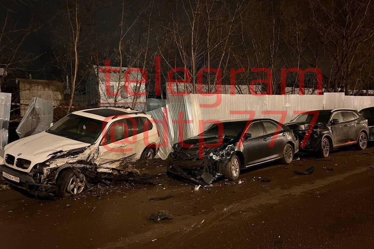 В подмосковном Реутове иномарка протаранила шесть припаркованных машин и опрокинулась. Кадры с места событий опубликовал Telegram-канал «ДТП и ЧП Москва и МО».