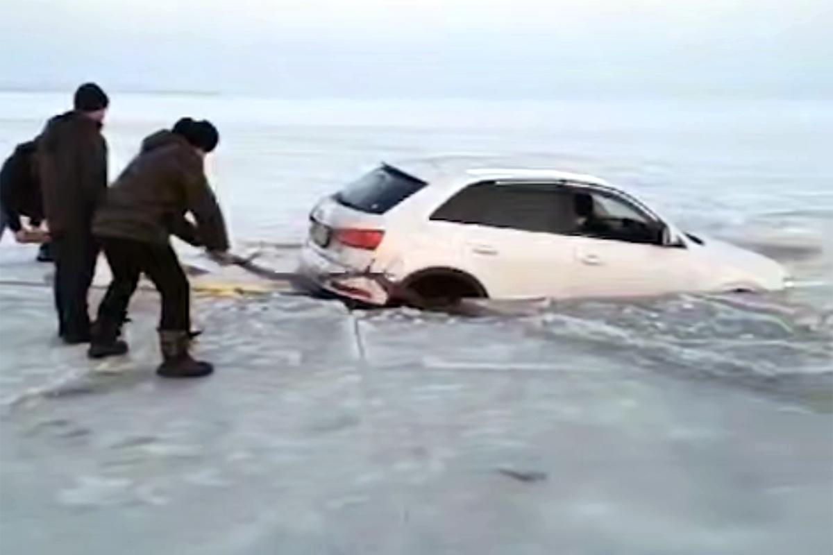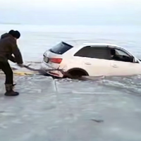 Очевидцы запечатлели инцидент на камеру. На кадрах видно, как мужчины пытаются вытянуть провалившийся под лед автомобиль при помощи палок и троса. При этом один из рыбаков сидит в машине и вычерпывает из нее воду. Далее видно, как автомобиль постепенно заполняет вода и он тонет. По словам автора видео, машина принадлежит китайцам.