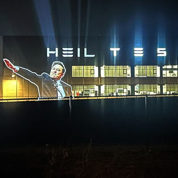 «Изображение Илона Маска, делающего спорный жест приветствия, было спроецировано на Gigafactory компании Tesla в Берлине, сопровождаемое словами Heil Tesla», — отмечается в публикации.