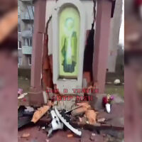 Очевидцы запечатлели последствия инцидента. На кадрах видно, что повреждено здание часовни, вокруг лежат кирпичи и обломки, при этом уцелела икона. Также недалеко от часовни лежит ограждение.