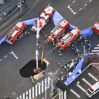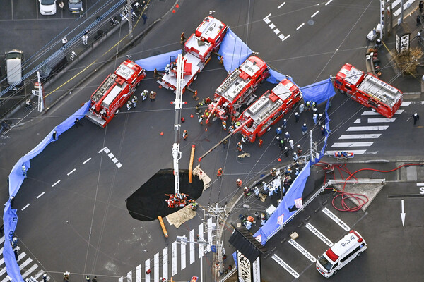 Как пишут СМИ, инцидент произошел в северной части Токио. Часть дороги на оживленном перекрестке обрушилась, образовав огромную воронку, которая поглотила грузовик. По данным пожарных, ширина ямы составила около 10 метров, а глубина — примерно пять метров.