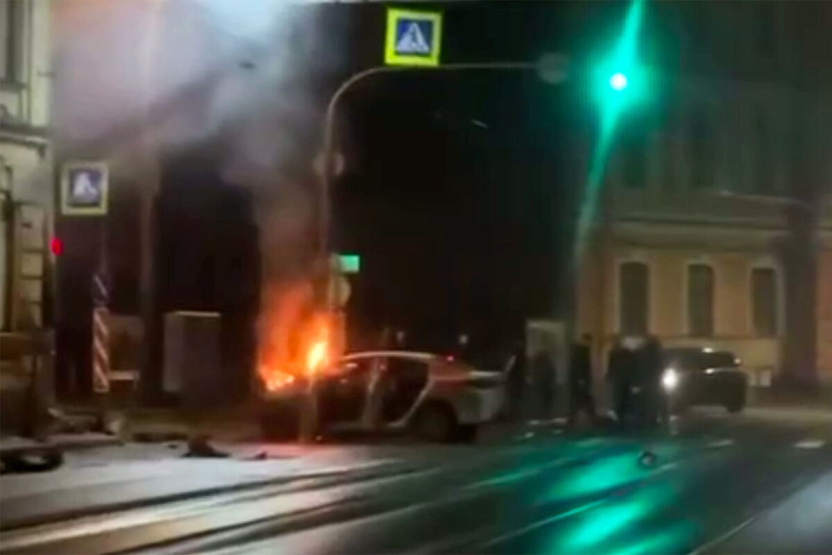 В Санкт-Петербурге автомобиль каршеринга на большой скорости влетел в фасад дома на Лесном проспекте и загорелся. Об этом сообщает Telegram-канал «Mash на Мойке».